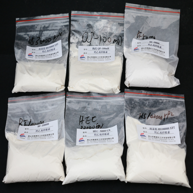 ①根据增稠目的选择合适的品种纤维素品种很多,例如羟乙基纤维素、羟丙基甲基纤维素、羟甲基乙基纤维素和甲基纤维素醚等。每种纤维素有不同的性能特征。例如甲基纤维素及其醚类的特征是易溶解于冷水中,但在温度高于45~60℃时,纤维素会从溶液中凝聚析出,导致涂料的黏度降低和涂料的不均匀;羟乙基纤维素则会很容易溶解于碱溶液中,且其黏度随温度的变化相对稳定,因而,羟乙基纤维素更多的应用于乳胶漆中。